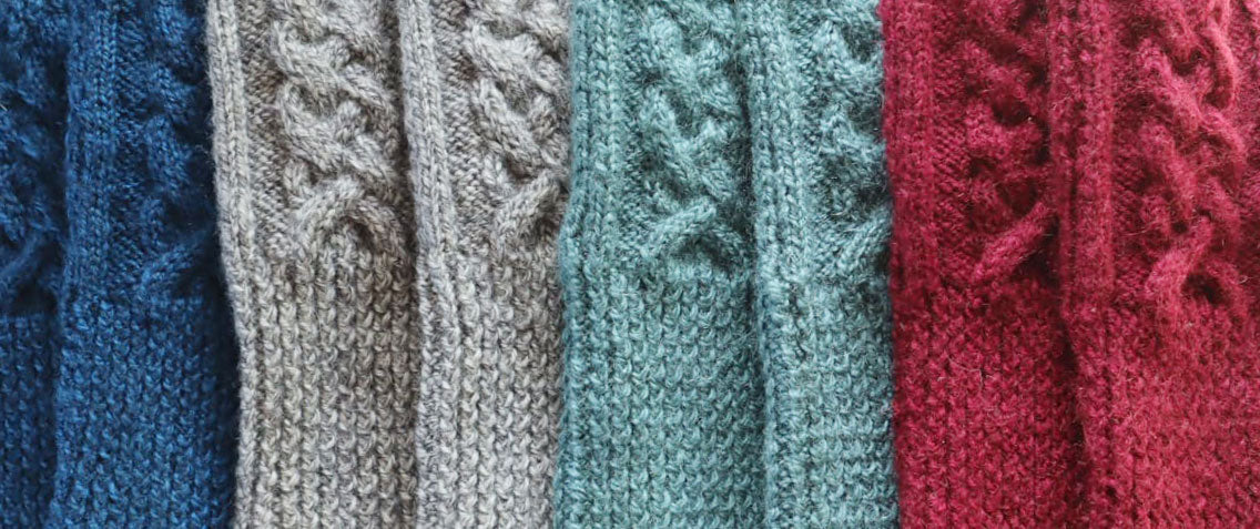 These items are the result of a collaboration between the knitters of Naari and Norah Gaughan, the author of Knitted Cable Sourcebook and editor of Vogue Knitting. These exquisite solid color items in intricate cable design highlight a fashionable vintage flair.