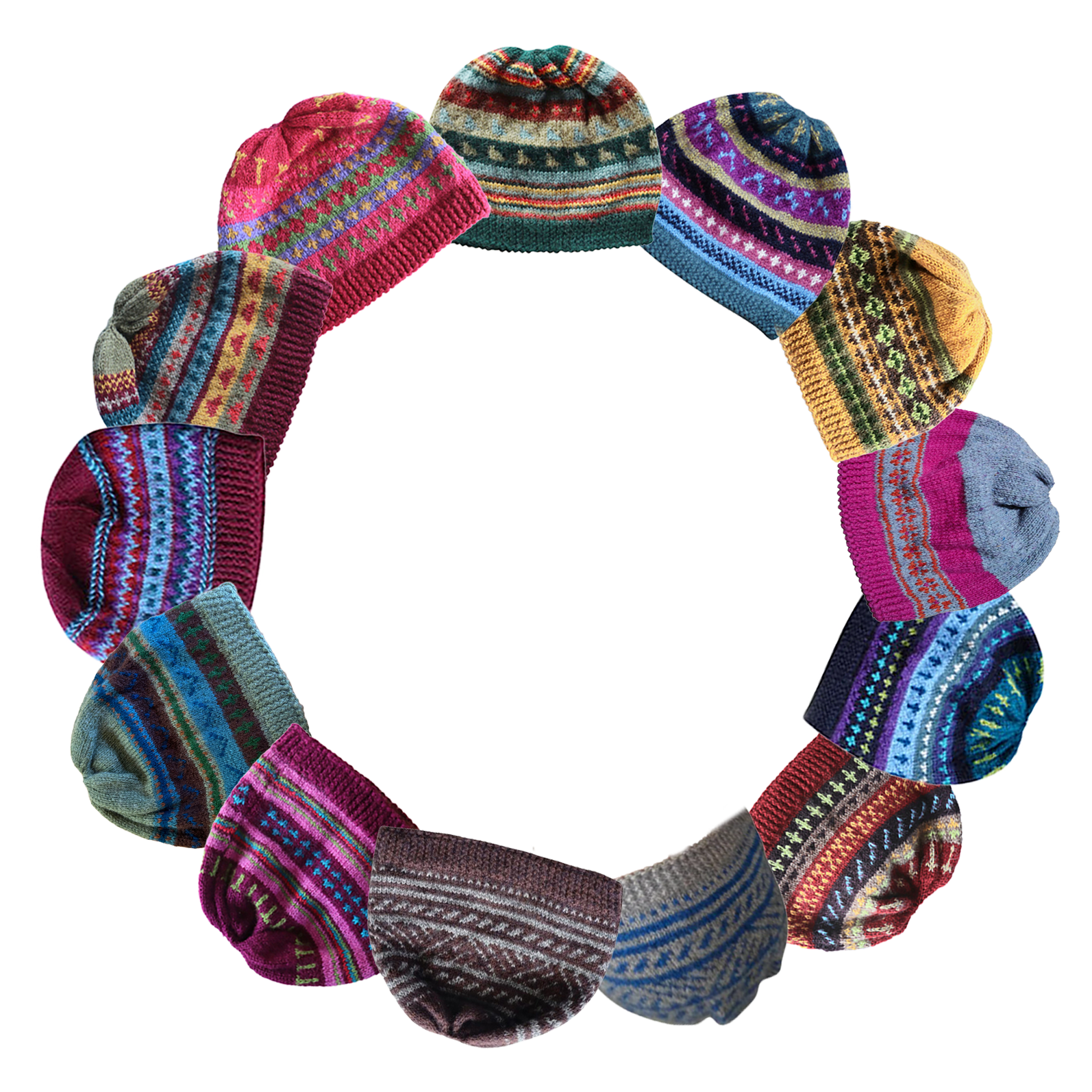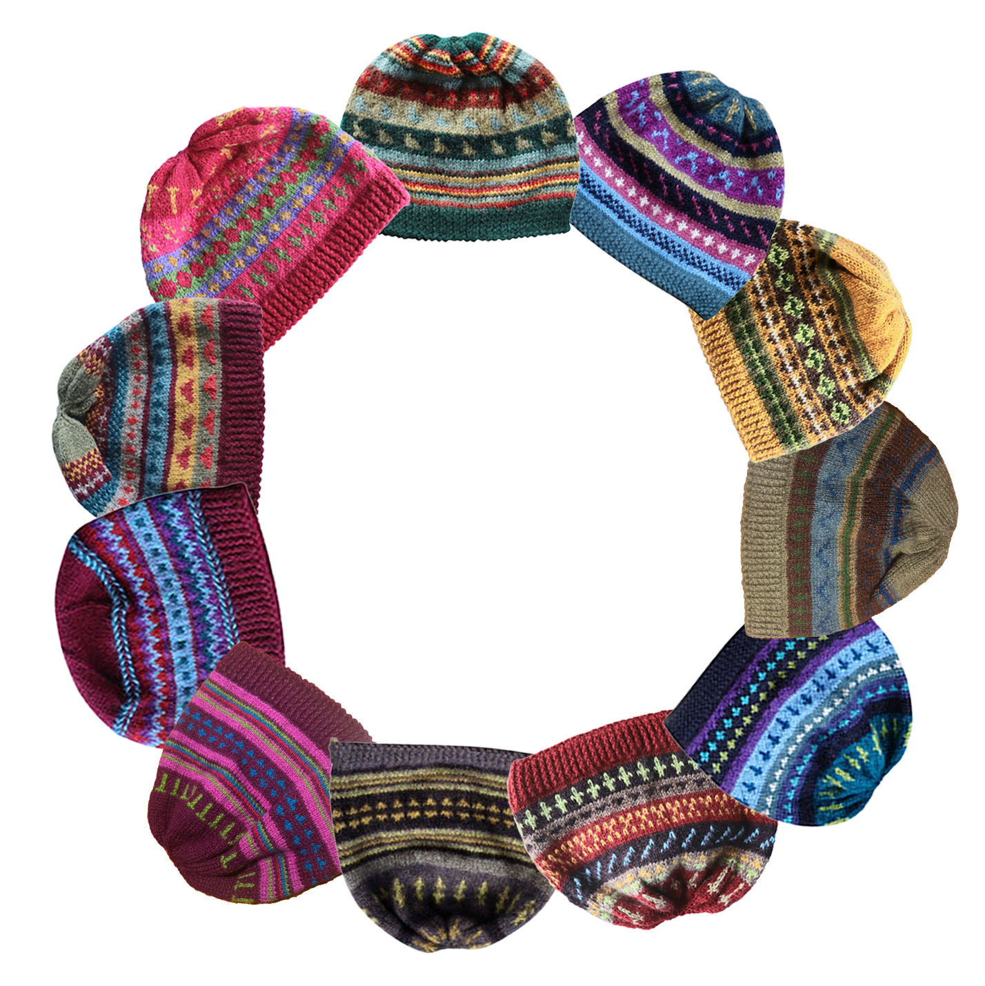 The Naari artisans have combined jewel tones in exciting and creative patterns. The warm fleece-lined caps and mittens are hand-knit from soft acrylic blend. Machine wash on delicate cycle, or hand-wash in cold water; lay flat to dry.