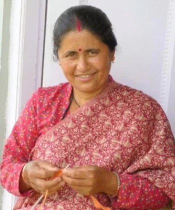 Kusum Joshi was a founding member of Himalayan Naari. She is a superb knitter; she created the Kusum stitch which is used in many of our shawls and scarves. She takes a leadership role in Naari as a member of the wool team, which is responsible for procurement and distribution of the wool to knitters.